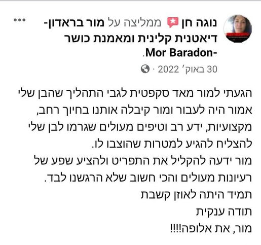 אתחשב בהעדפותיך, קצב וסדר היום שלך כך שהתפריט יהיה פרקטי.